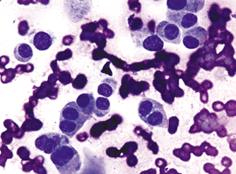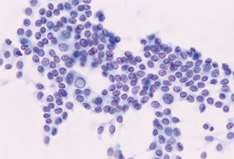 What types of cells can be seen in this FNA and what kind of tumor do they characterize?