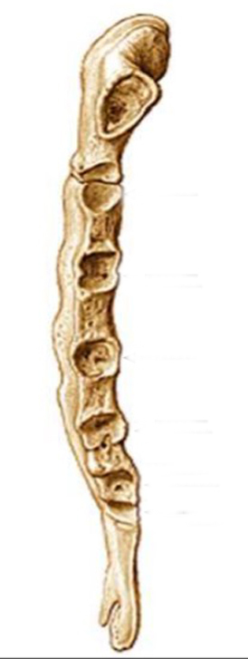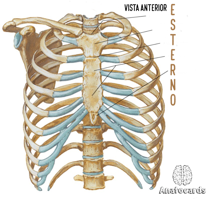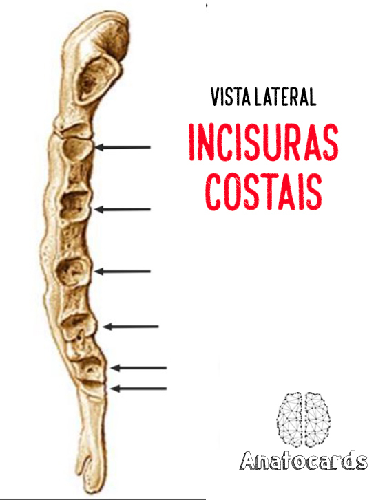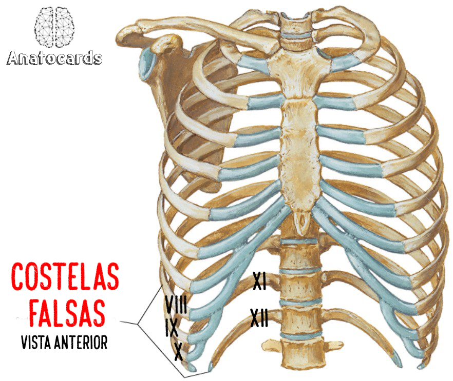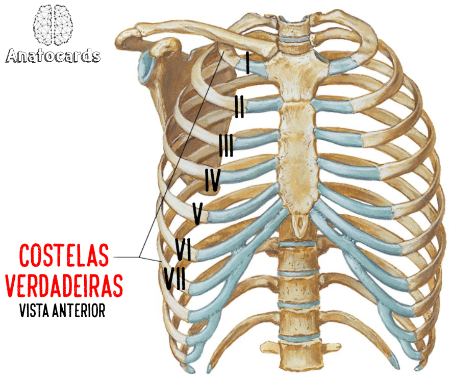 As costelas são em número de 12 pares. São ossos alongados, em forma de semi-arcos, ligando as vértebras torácicas ao esterno.