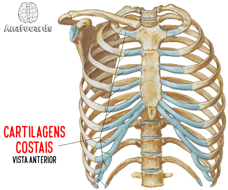 As costelas e as cartilagens costais formam a maior parte da caixa torácica; ambas são identificadas por números, da superior (1a costela ou cartilagem costal) para a inferior (12a).
