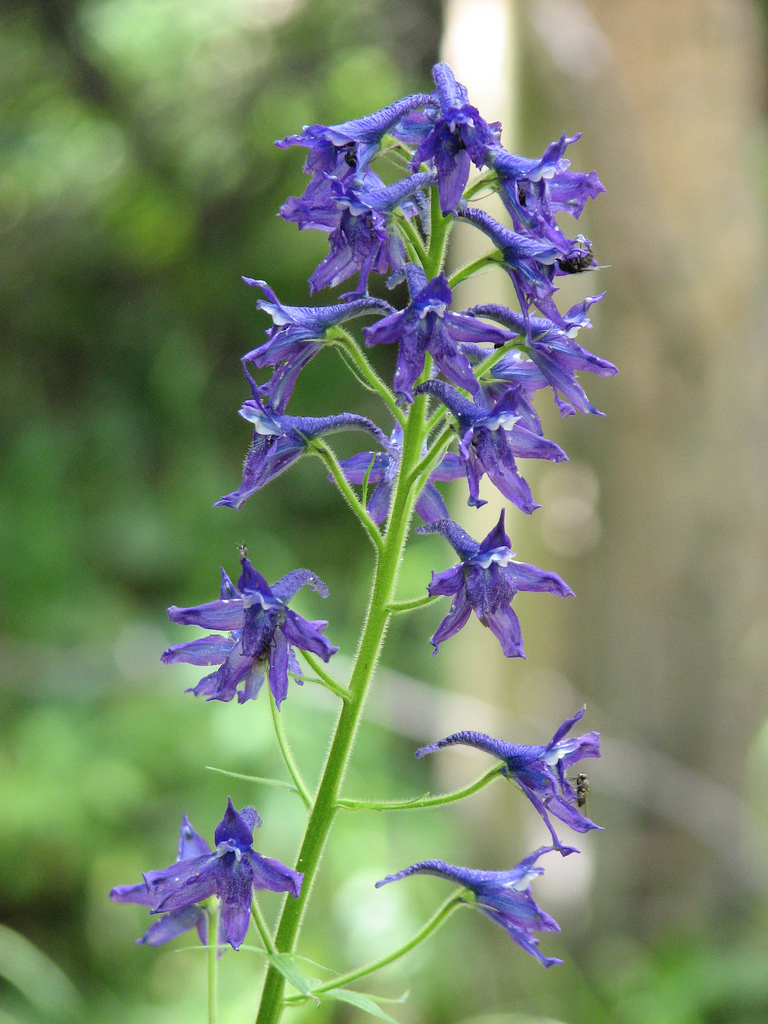 Contains toxic diterpenoid alkaloids. Tall larkspur (Delphinium barbeyi) is considered the most problematic. The alkaloids cause a curare-like blockade of neuromuscular junctions, by reversibly binding to nicotinic acetylcholine receptors. Death may result in as little as 3 hours after consumption. Affects horses, cattle and ovine (less sensitive). Clinical signs include excitability, muscle tremors, stiffness, staggering, and a basewide stance. Cattle may assume a kneeling position before collapsing and develop boat, regurgitation (ruminants), and constipation.