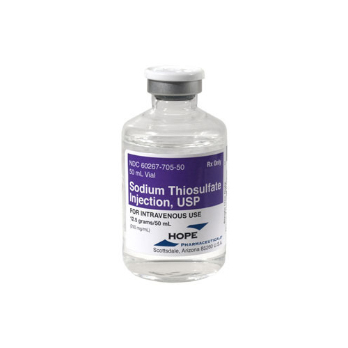 IV or intraperitoneal injection of 20 mL of a 10% solution of sodium thiosulfate mixed with 10 mL of a 10% solution of sodium nitrite (not approved for food animals). Alternative treatment for ruminants - thiosulfate alone using a 30% to 40% solution IV at a dose of 25 to 50 g/100 kg of body weight. Administration of a gallon of vinegar diluted in 3 to 5 gallons of water by stomach tube to help acidify the rumen.