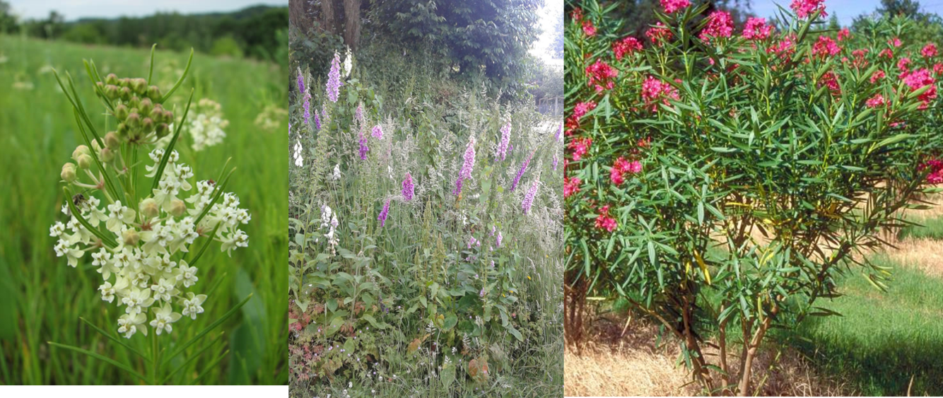 Cattle is more commonly affected. Plants containing them include: In pasture milkweed (Asclepias spp.), dogbane or Indian hemp (Apocynum cannabinum), and blue-eyed grasses (Sisyrinchium spp.) More likely to be found in gardens than pastures foxglove (Digitalis spp.), hellebores (Helleborus spp.), hyacinth (Hyacinthium spp.), kalanchoe (Bryophyllum spp.), lily of the valley (Convallaria majalis), oleander (Nerium spp.), periwinkle (Vinca major), pheasant’s eye (Adonis microcarpa), spindle tree (Euonymus spp.), squill (Drimia or Urginea spp.), and star of Bethlehem (Ornithogalum spp.)