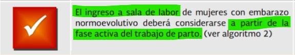 ( La GPC establece que el ingreso a labor está indicado a los 5cm )
