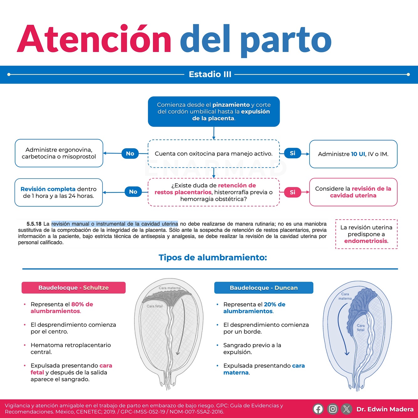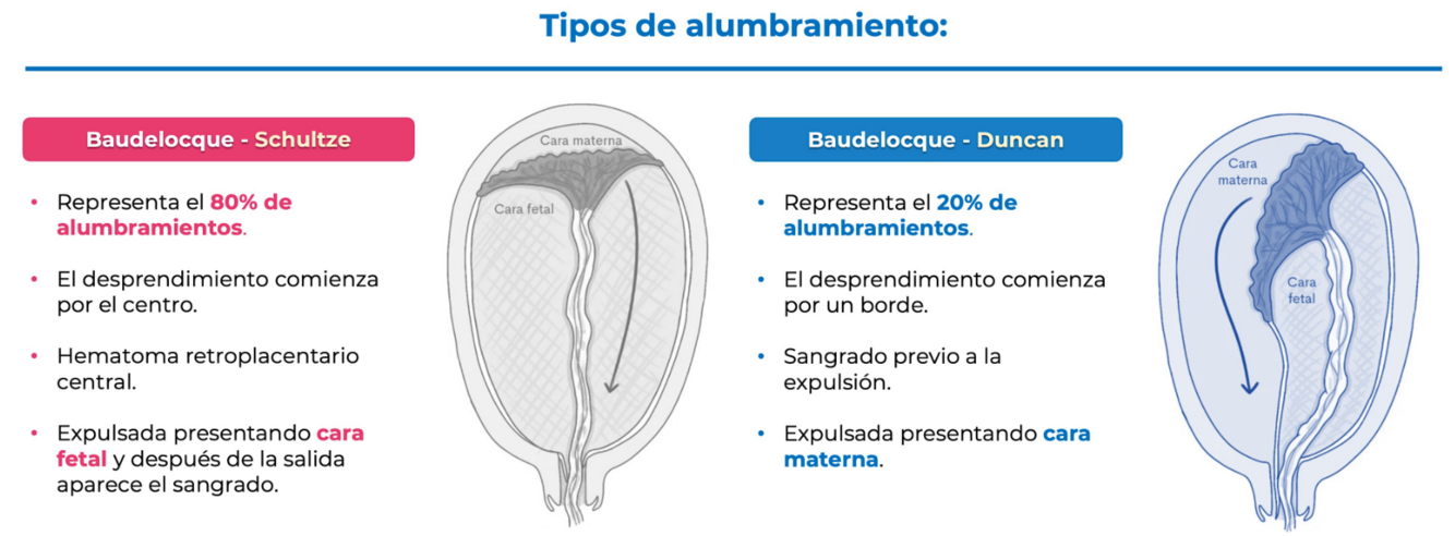 Tipo Duncan en el 20% , desprendimiento lateral con presentación de cara materna.