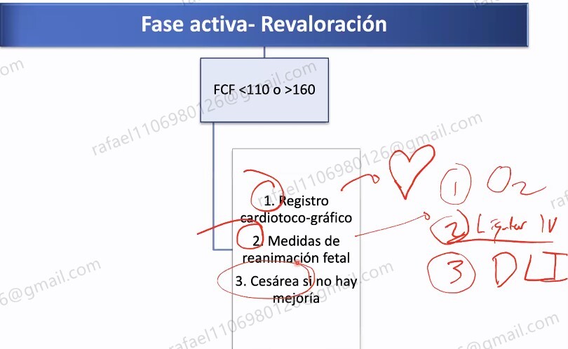 2 - Reanimación fetal con : O2 al 100%, liquidos IV y poner a la paciente en decubito lateral izquierdo