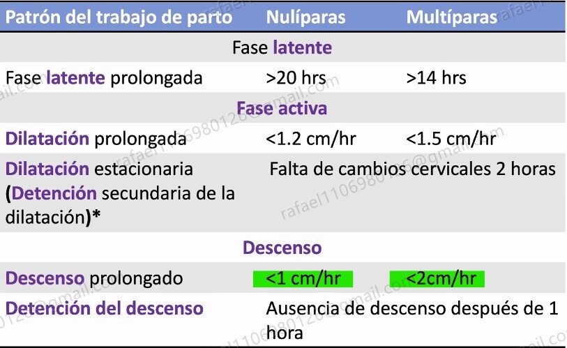 Que define a descenso prolongado en el trabajo de parto