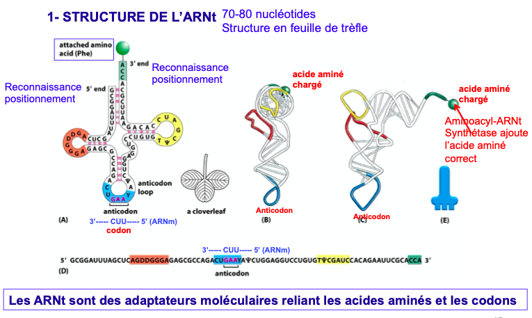 Les ARNt sont des adaptateurs moléculaires reliant les aa et les codons.