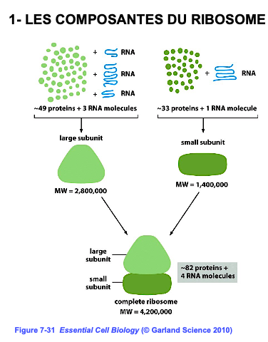 Gros complexe de 4 ARN et de plus de 80 protéines.