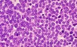 Células de pequeño tamaño de forma redondeada con núcleos de gran tamaño y citoplasma escaso