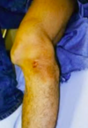 Paciente de 23 años con un esguince grave inmovilizado con una férula suropédica que 10 días después acude a Urgencias por molestias con la férula. Presenta dolor que cede parcialmente con analgesia de primer escalón y aumento de volumen de la pierna muslo
