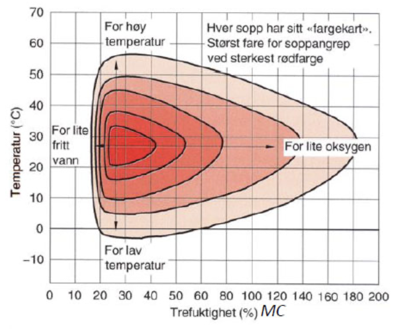 Forklaring A: Figuren viser at holdbarhet (i dete tilfelle fare for soppangrep) er veldig avhengig av fuktinnhold.