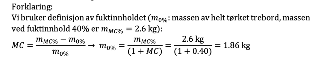 Massen av trebordet i figur var 2.6 kg ved fuktinnhold 40%. Hva er massen til helt tørket trebord?