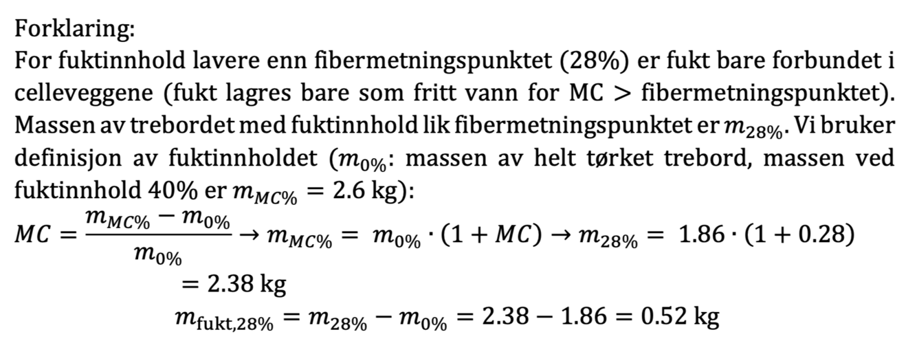 Massen av trebordet i figuren var 2.6 kg ved fuktinnhold 40%. Hvor mye av denne massen var fukt forbundet i celleveggene?