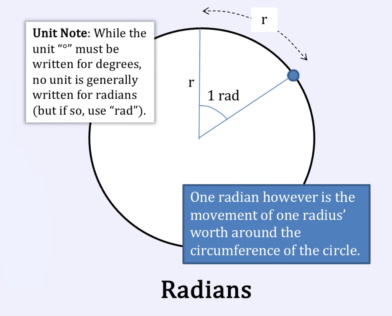 The movement of one radian’s worth around the circumference of the circle