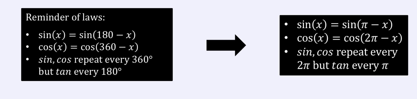 How do trig laws change for π?