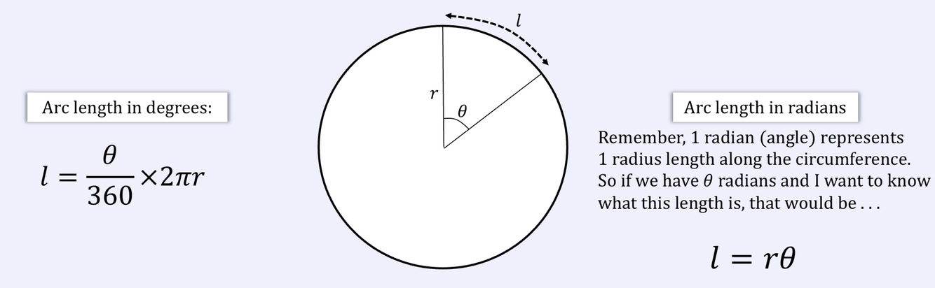 What is the formula for arc length in radians ?