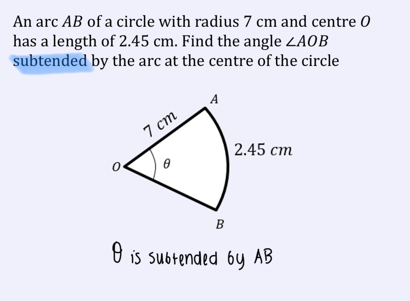 What does subtended mean?