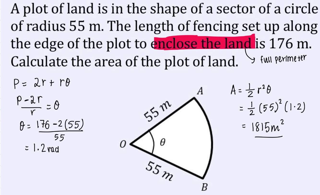 What is the area of a sector in radians?