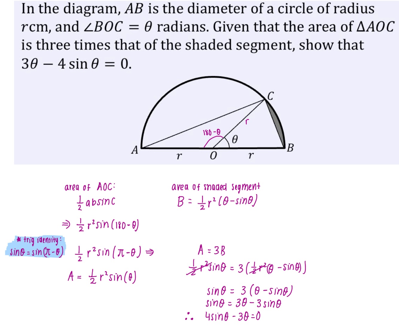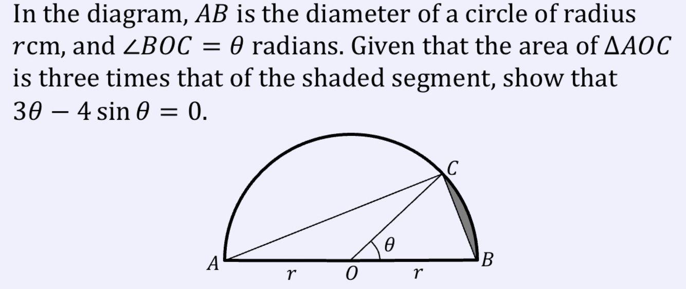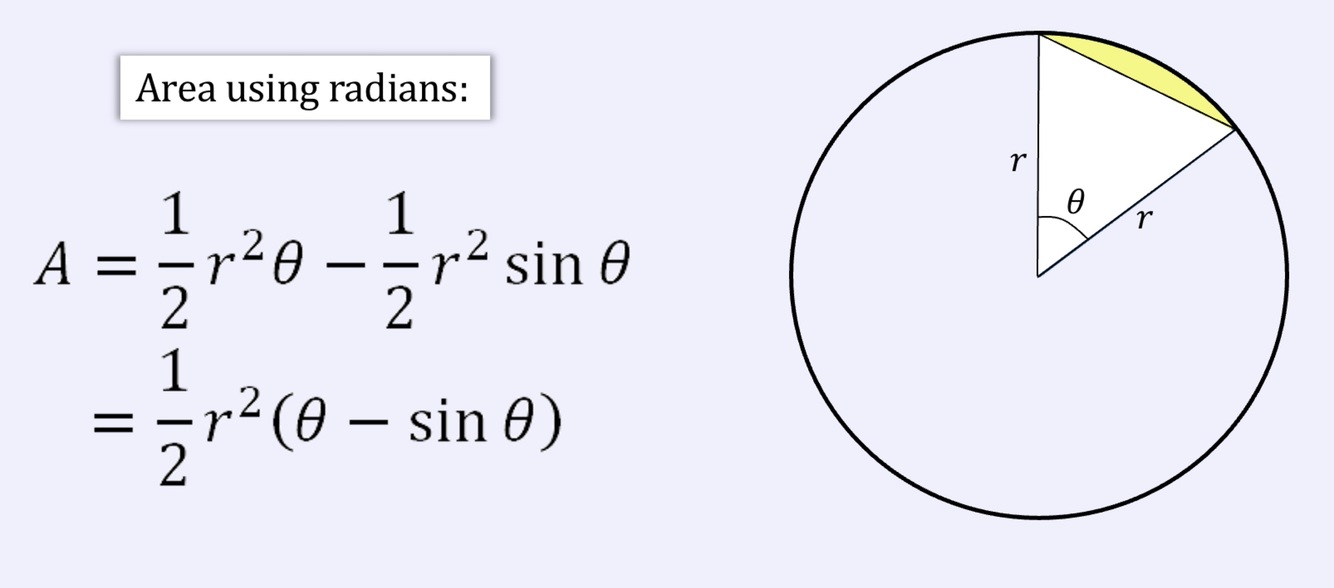 What is the area of a segment in radians? (Formula)