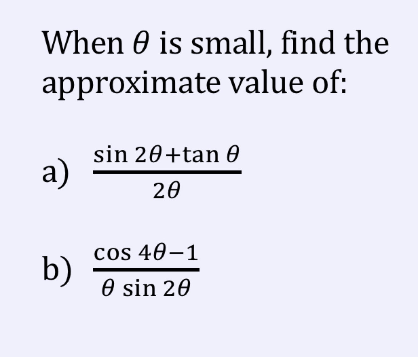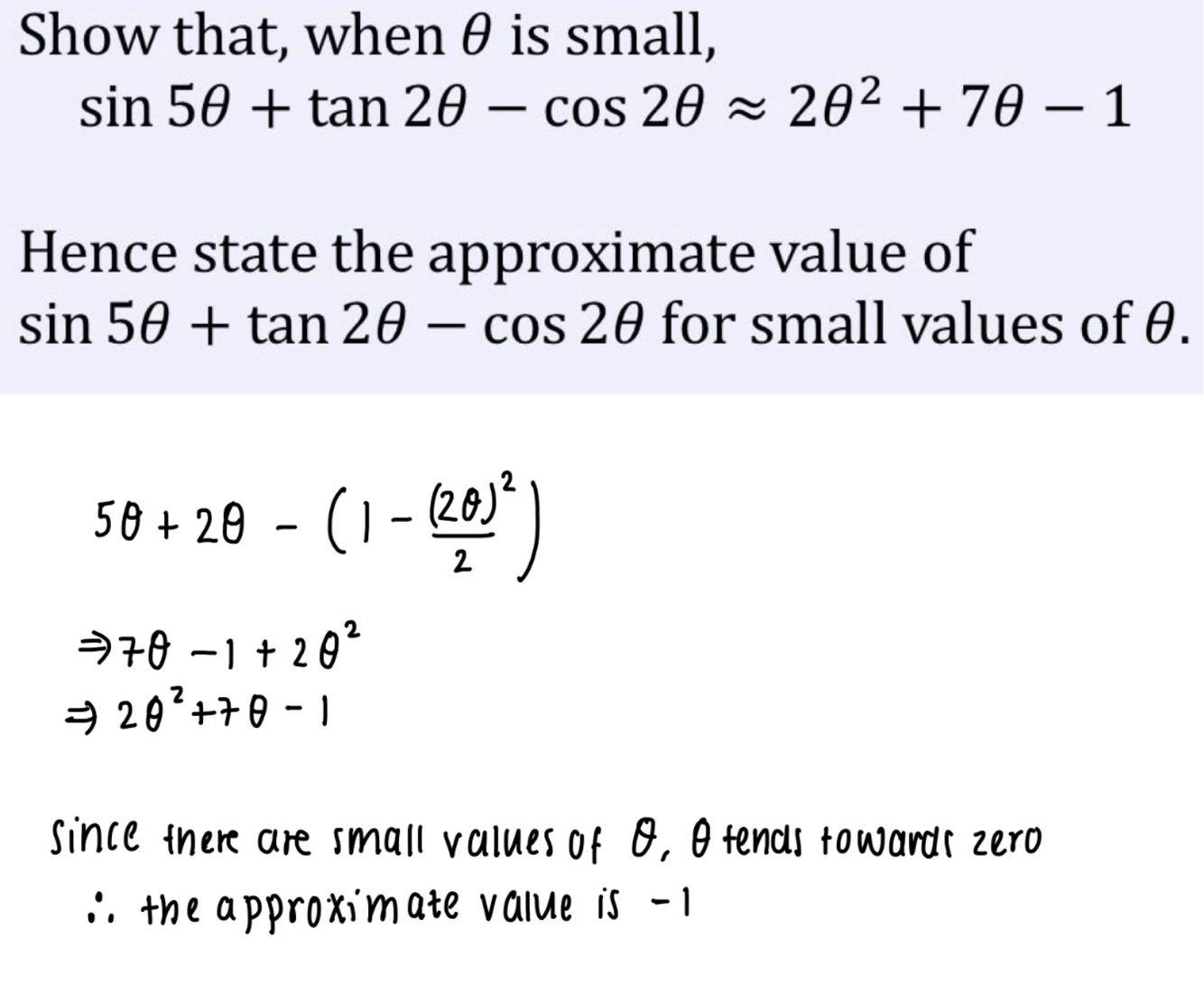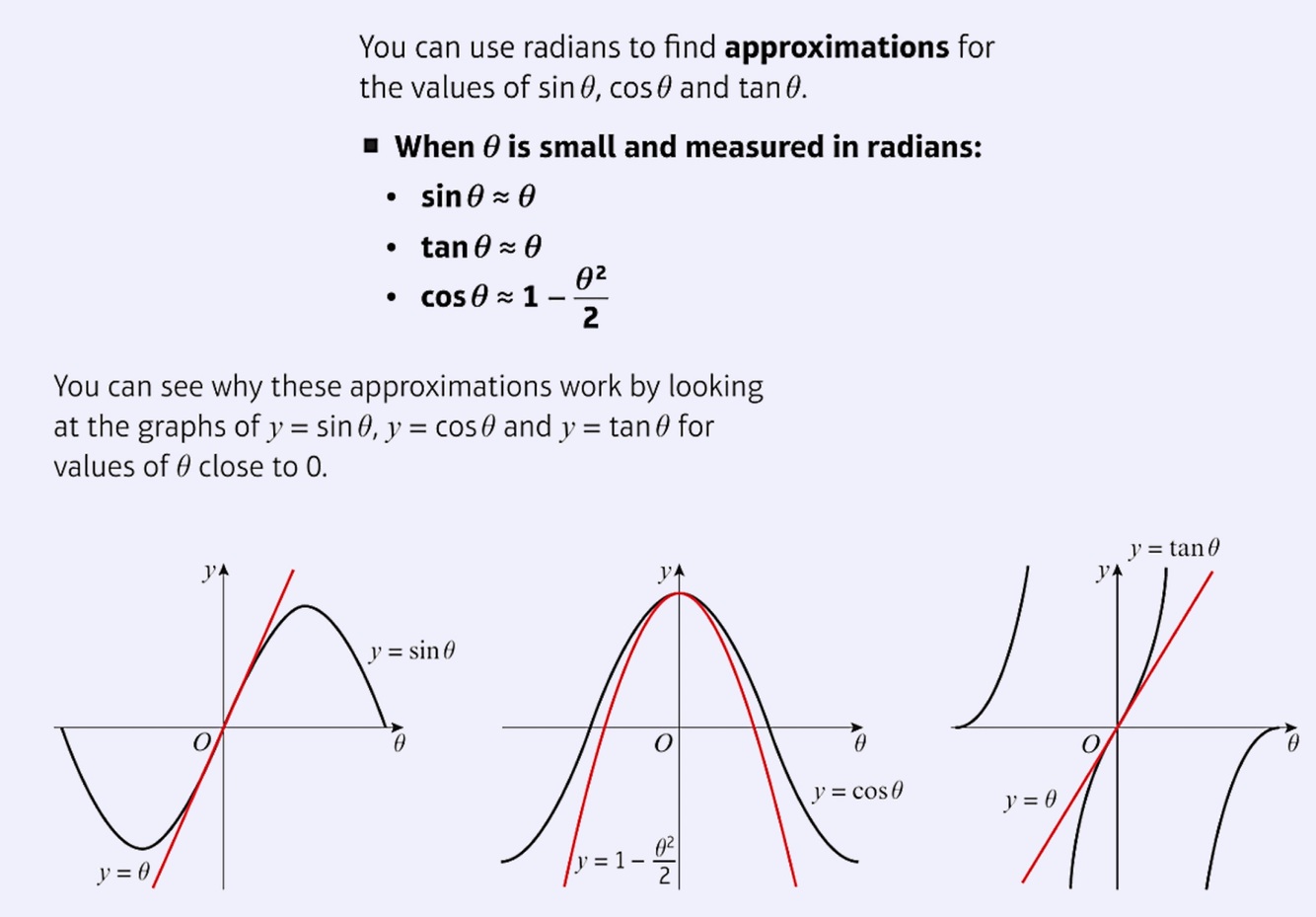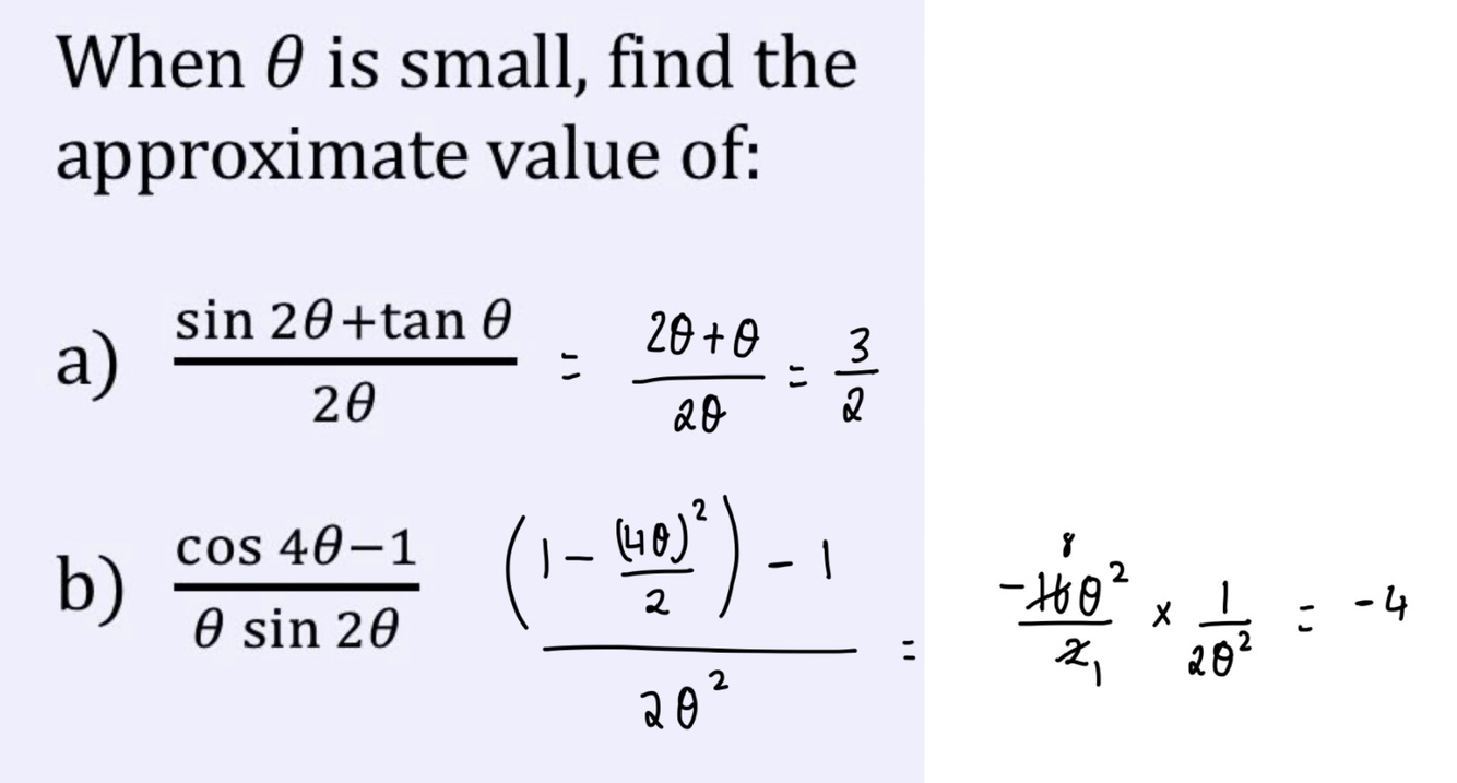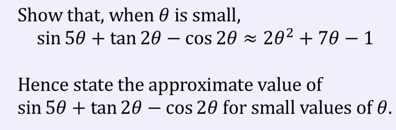 What is the small angle approximation for sin, cos and tan? (Formula)