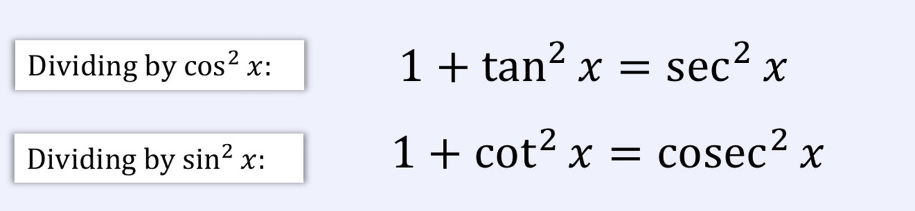 What 2 new identities are formed by the OG identity sin^2 (x) + cos^2 (x) =1?