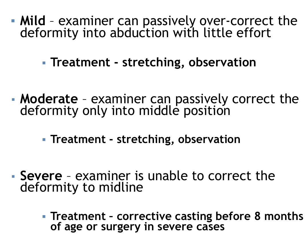 if an eaminer can is able to passively correct the deformity into the middle position but no farther what level of metatarsus adductus is this