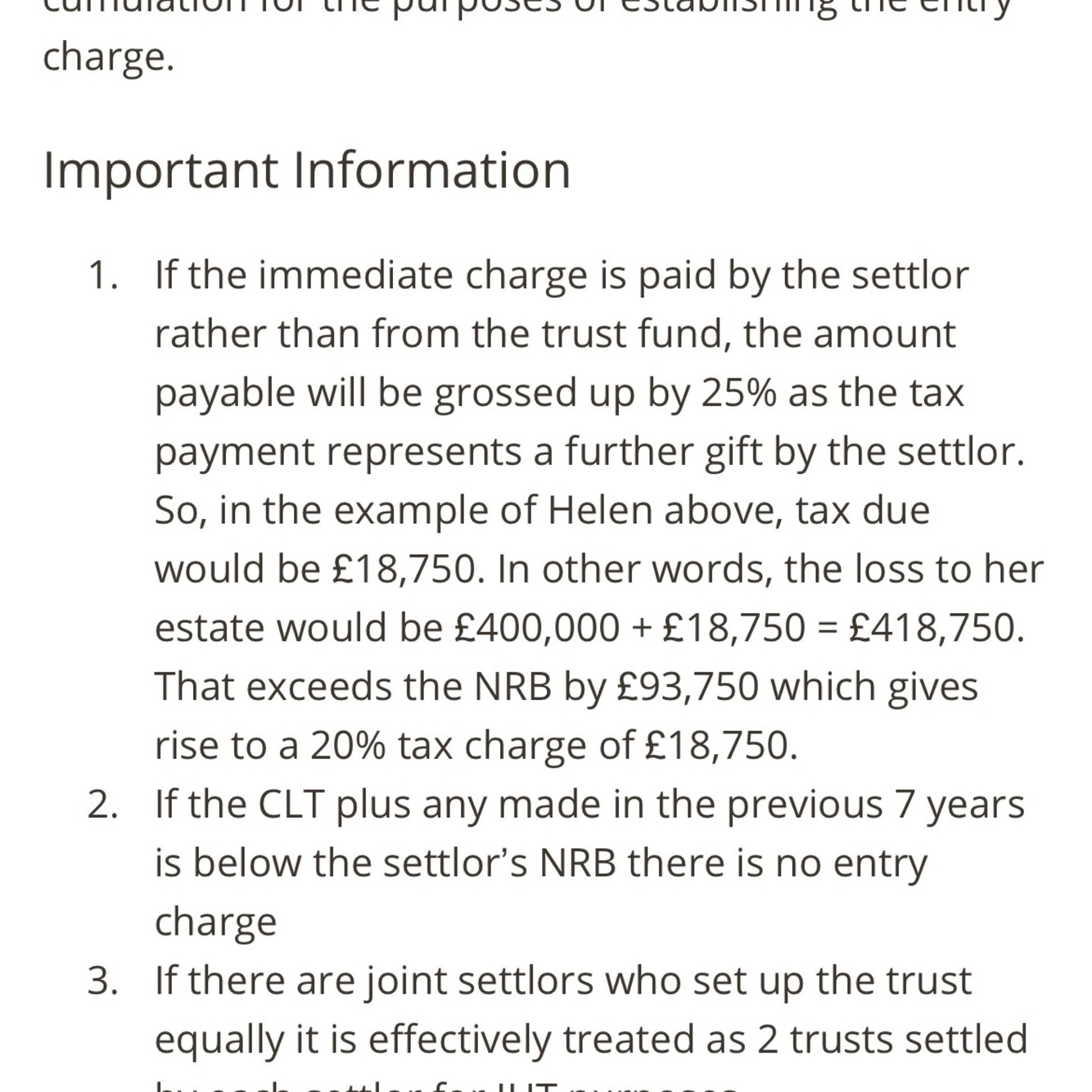 If tax charge paid by settlor grossed up by 25%