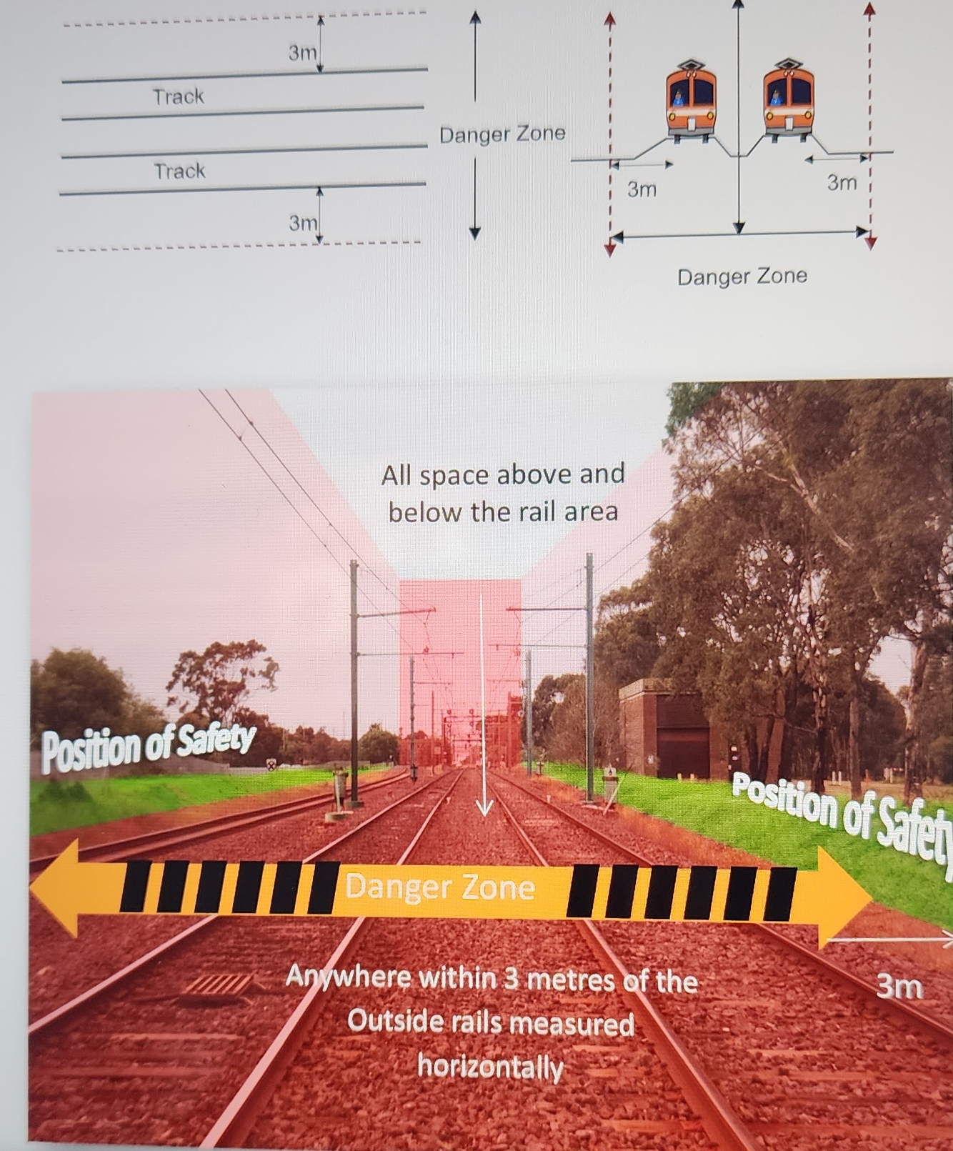 Where is the danger zone in a rail corridor?
