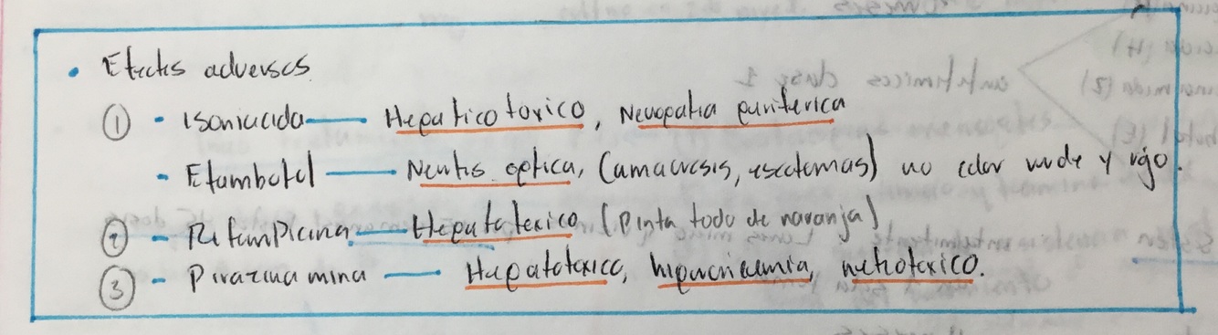 Menciona los efectos adversos de los medicamentos antifimicos de primera clase
