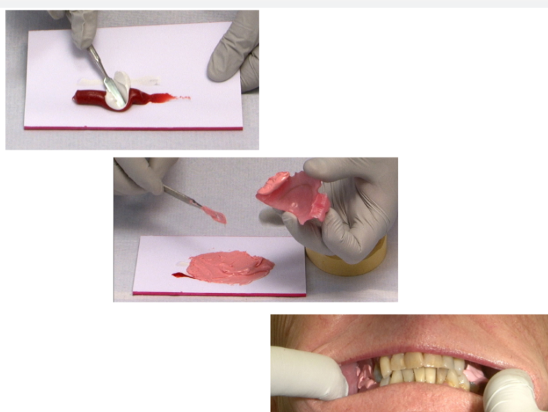 If upper and lower wax rims- only need to apply to one and ask patient to close mouth until it has set and then remove from mouth