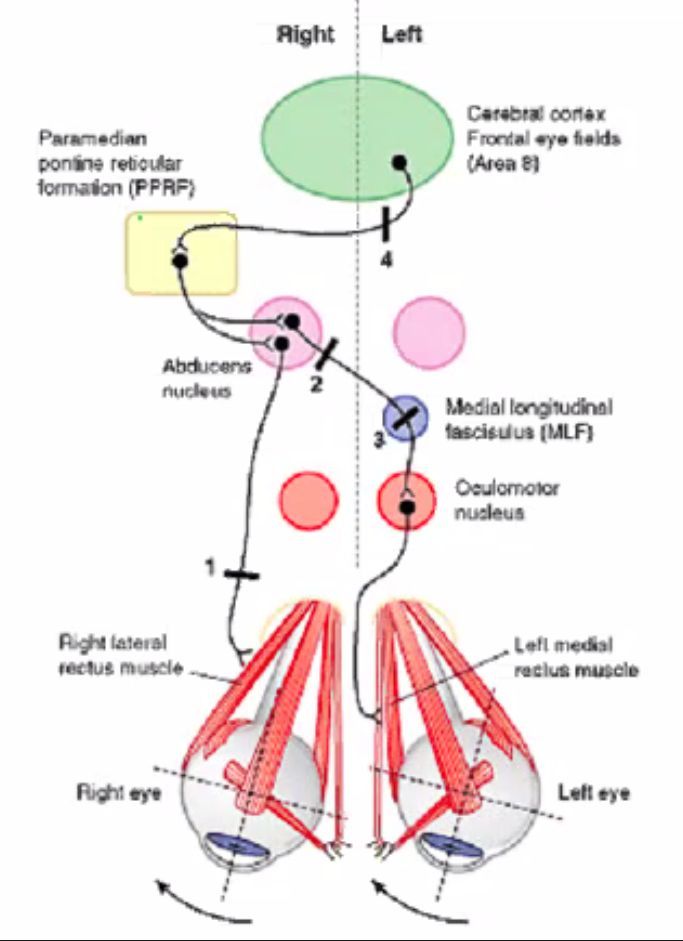 Connection of the frontal eye field to the cranial nerves