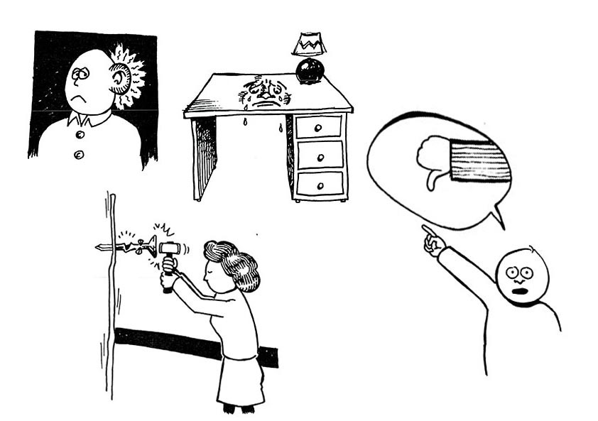 SORE EAR, SADDEN DESK, HIT HER NAIL