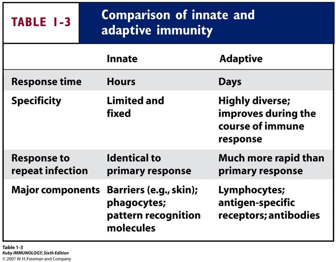 What are some comparisons of the innate and adaptive immunity?
