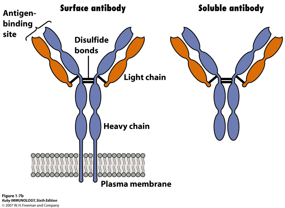 A “B” cell is an antigen binding receptor (antibody)