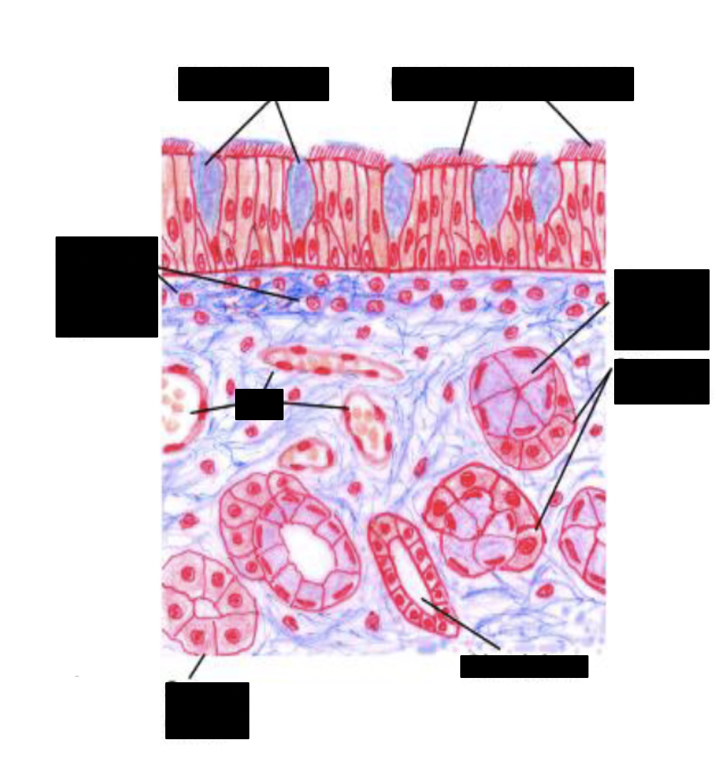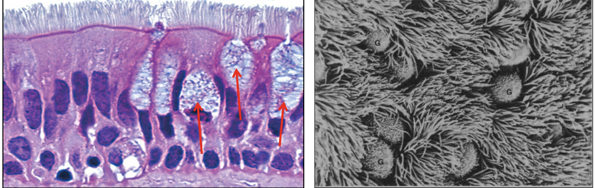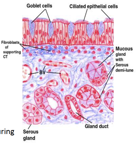 pseudostratified columnar ciliated epithelium with goblet cells