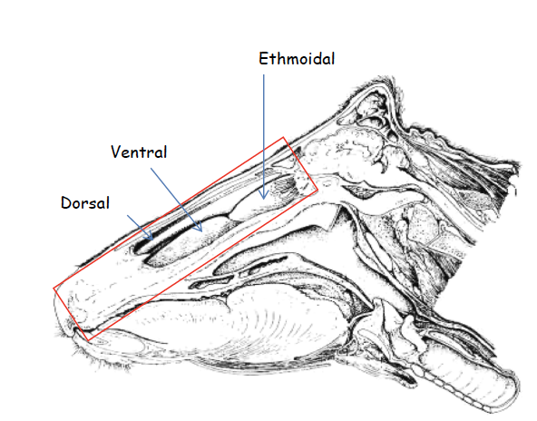 dorsal, ventral and ethmoidal conchae (middle very small)