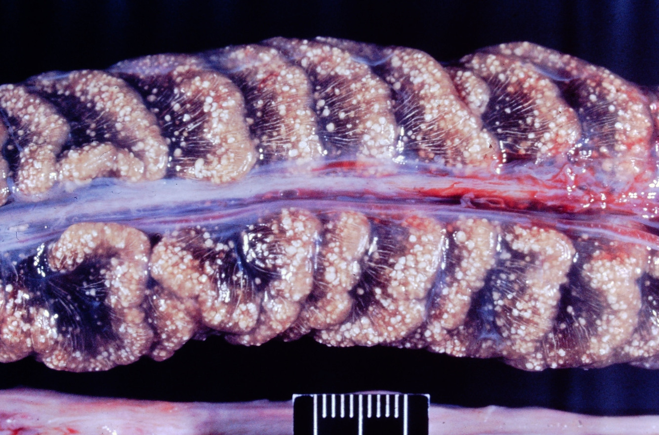 Characteristic lesion caused by Encephalitozoon caniculi: