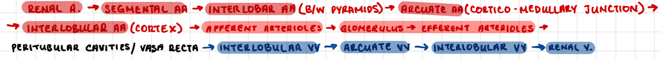 What are the blood vessels of the kidneys, and describe blood flow through them?