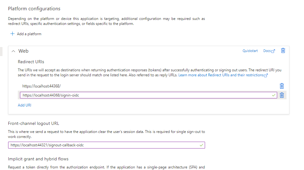 Also in a config file there will be entries for ClientId, Tenant, Authority, as well as the redirectUri