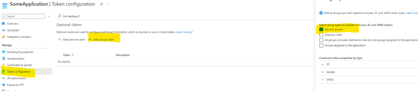 Note: Using a untility that can look at a JWT token, you will see the groups with a guid added.