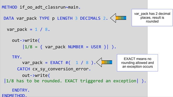 By using EXACT rounding and truncation is not allowed and an exception occurs (cx_sy_conversion_error).