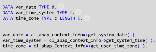 The class cl_abap_context_info provides methods that can be used to retrieve current time and date information in ABAP.