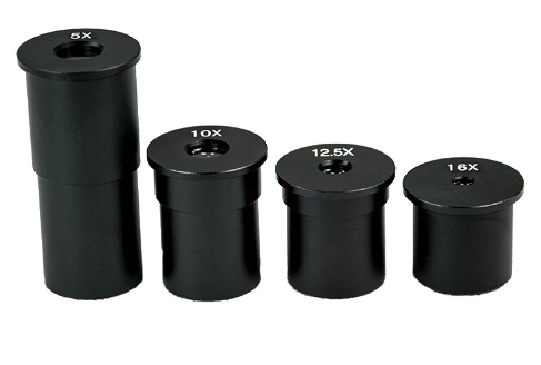Objetivas aumentam até 100x e a ocular aumenta em até 10x.
