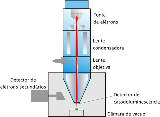 Qual o princípio do funcionamento do microscópio eletrônico.
