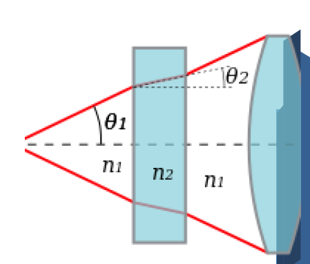 Do semiângulo do cone máximo de luz que pode entrar ou sair da lente.