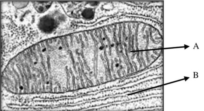 A amostra é de uma mitocôndria. Foi formada por microscopia eletrônica.