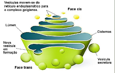A presença de cisternas cis, medianas e trans é característica de qual organela?