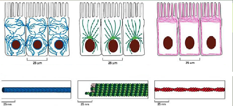 Da esquerda para a direita, quais são os filamentos e seu principal constituinte?