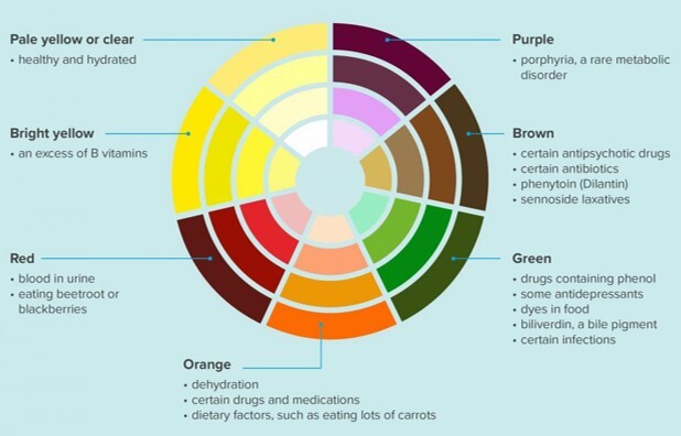 Variation of color due disease states, hydration status, foods eaten, and medications