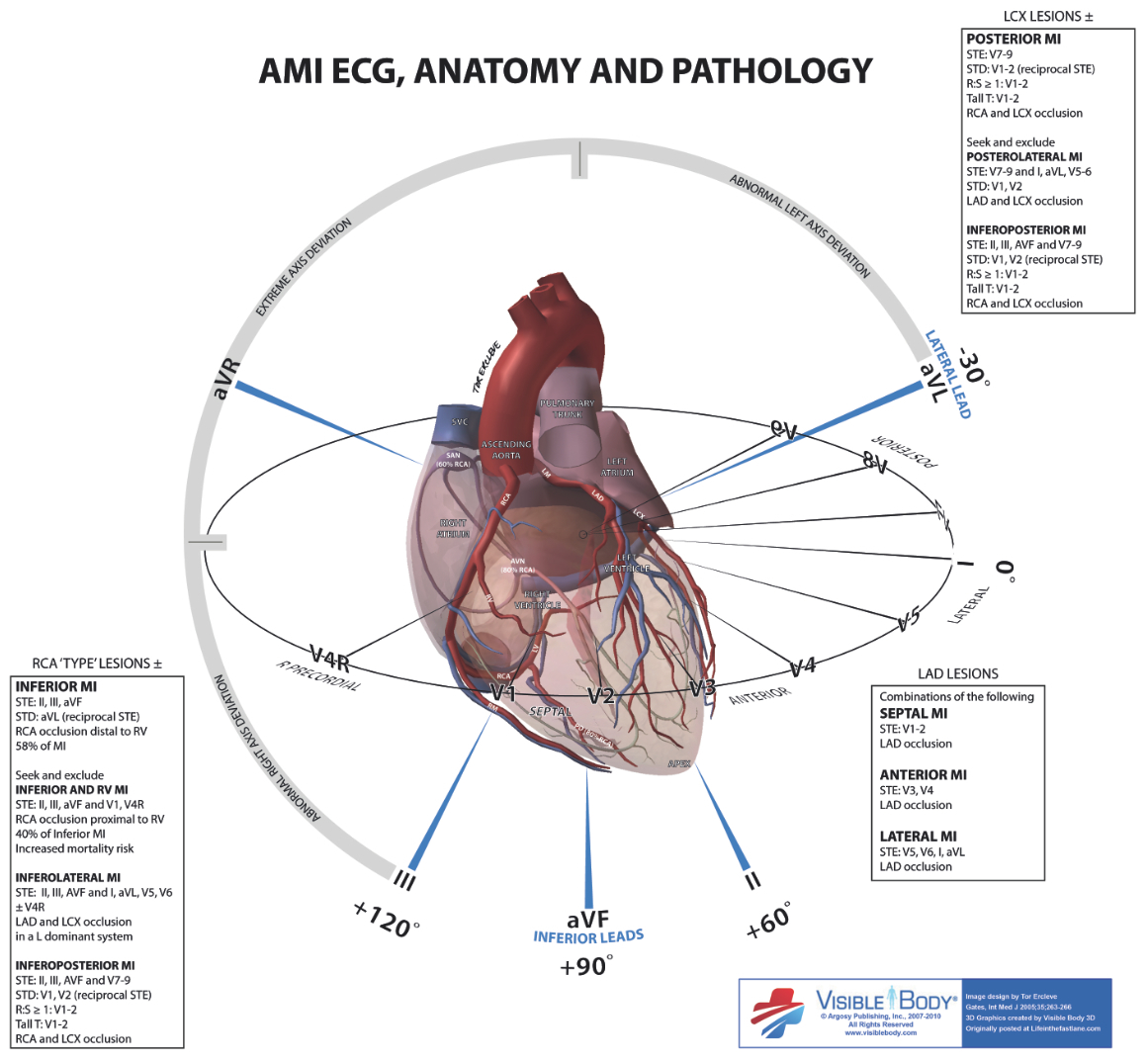 LAD occlusion ==> dx + EKG findings?